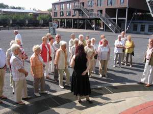 Die große Teilnehmerschar wurde in Gruppen von etwa 20 Personen aufgeteilt, so dass man den Ausführungen der Führerinnen gut folgen konnte. Dadurch erscheinen allerdings auf den folgenden Bildern