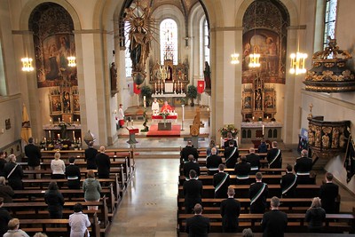 Pfarrkirche Sankt Alexander besetzt, als Pfarrer Kolotzek das Festhochamt zu Ehren des