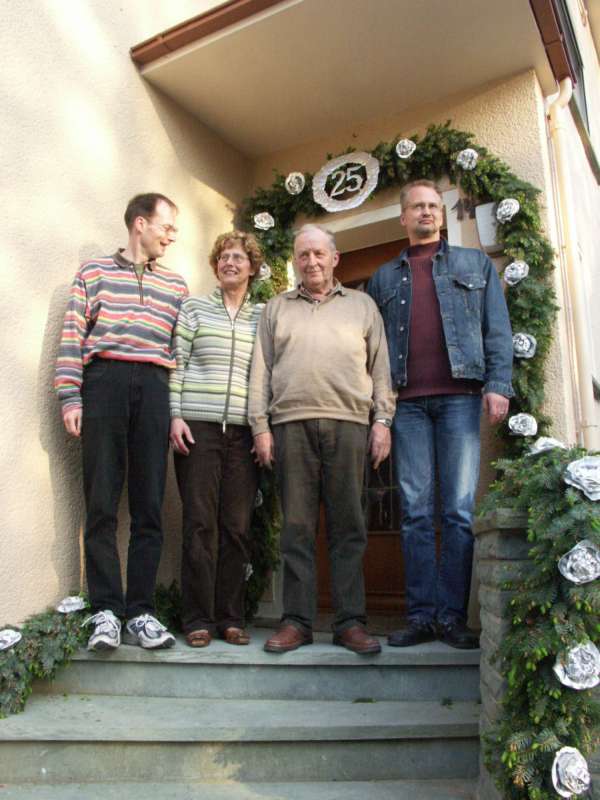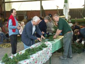 Große Ereignisse werfen ihre Schatten voraus: Zu den Vorbereitungen auf das Schützenfest gehört das Kränzen beim König. Weil nun dieses Jahr König Frank Müller und Silberkönig Hubert Johannknecht Nachbarn sind, taten sie sich zusammen und luden Hofstaat und Nachbarn zum gemeinsamen Kränzen auf dem Hof Müller ein. Viele fleißige Hände machten sich ans Werk, aber auch die Geselligkeit kam nicht zu kurz. Bei Würstchen und Bier wurden die zwei Kränze gewunden und über die Haustüren gehängt.