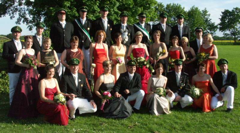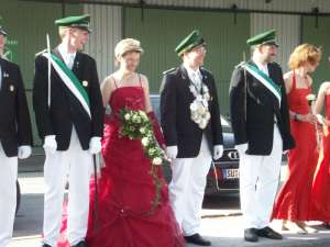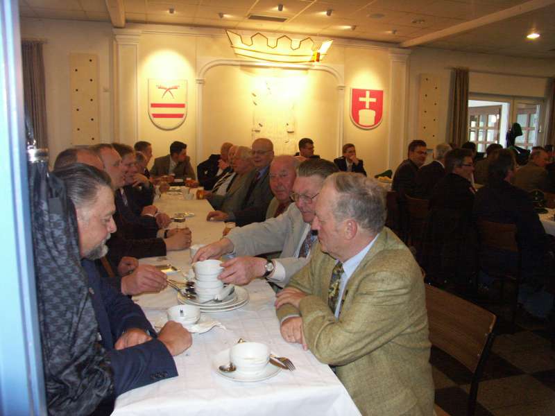 Die Schützen stärken sich für das Vogelschießen; vor allem einer, aber noch weiß keiner, wer das ist.
