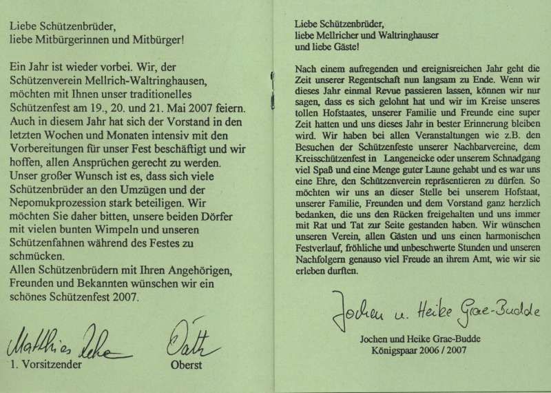 Übrigens: Sie wissen doch sicher, dass Sie eine große Galerie der Königspaare des Schützenvereins Mellrich-Waltringhausen hier auf dieser Homepage finden, ab 1937 sogar lückenlos: