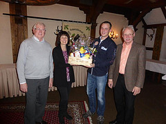 Zunächst erlebten die Anwesenden noch einmal in einem fast halbstündigen Videofilm den Jahresausflug, der am 23. August das Kloster Dalheim und die Fahrt mit der Almetalbahn zum Ziel hatte. Zweiter Vorsitzender Heinz-Josef Körtling ehrte Dieter Magner für 25-jährige und Werner Wirth für 50-jährige Mitgliedschaft in der Soldatenkameradschaft. Er dankte beiden Jubilaren für die langjährige Treue zum Verein, lobte insbesondere das Engagement von Werner Wirth und überreichte ihnen unter dem Beifall der Gäste die Treunadeln in Silber bzw. Gold. Recht lebhaft ging es bei der anschließenden Tombola zu. Vorsitzender Priesnitz dankte für die großzügigen Tombolaspenden. In Rekordzeit waren 400 Lose verkauft. Regina Elsner aus Ravensburg wurde zur Glücksfee erwählt, die mit Heinz-Josef Körtling und Helmut Hoffmeier 115 Gewinner ermittelte. Michél Schulz freute sich, als Regina Elsner ihn mit der Nummer 148 zum Gewinner des großen Präsentkorbes machte.