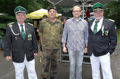 Das Kameradschaftsfest in Anröchte bietet immer wieder die Möglichkeit, das Kameradschaftswesen im heimischen Raum zu fördern und zu festigen. Auch in diesem Jahr traf man sich am vergangenen Samstagabend im Esperwald zu einem gemütlichen Beisammensein, das erfreulich gut besucht war, denn der schöne Spätsommerabend hatte viele Gäste zum Auftakt des Festes angelockt. Am Sonntagvormittag startete dann das große Waldfest. Unter den Festeilnehmern weilten Bürgermeister Alfred Schmidt, Kreiskameradschaftsvorsitzender Eckhard Schulze-Dasbeck, Kreisgeschäftsführer Wilfried Kahr, die RK Lippstadt, die Soldatenkameraden aus Meiste, Mellrich und erstmals die Soldatenkameradschaft aus Delbrück. Auch der einsetzende Regen konnte die gute und kameradschaftliche Stimmung nicht stören, denn das Tambourkorps Anröchte sorgte mit seiner musikalischen Umrahmung für ein gutes Kontrastprogramm. Leider waren zur Jubilarehrung nicht alle Jubilare erschienen. Vorsitzender Hans-Werner Hammer und Kreiskameradschaftsvorsitzender Eckhard Schulze-Dasbeck würdigten die langjährige Treue der Kameraden zur Soldatenkameradschaft Anröchte. Unter dem Beifall der Gäste gab Vorsitzender Hammer die Namen der Jubilare bekannt: