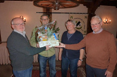 überreichte Kassierer Helmut Hoffmeier dem Jubilar die Ehrennadel für 40-jährige Vereinszugehörigkeit. Danach folgte die Tombola mit vielen schönen Preisen. Marianne Diergarten wurde zur Glücksfee ernannt, die mit Helmut Hoffmeier und Heinrich Kirchhoff
