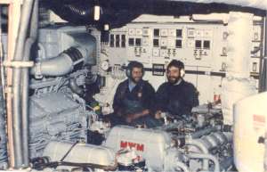 Josef Haese und Kamerad Thomas im Maschinenraum
