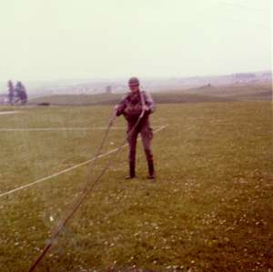 Mai 1972 Warten auf den nächsten Sprung. Altenstadt in Oberbayern. J. Schulte 2.v.r.