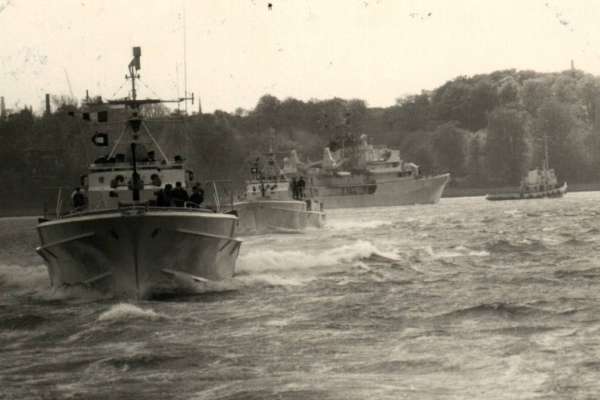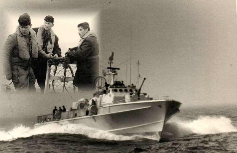 Das Bild zeigt das Schnellboot "Seeadler", auf dem Marinesoldat Udo Puschinna (r.) seinen Wehrdienst leistete.