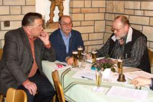 |  Josef Schulte (rechts) hatte während der Versammlung mit dem Verlesen des Protokolls erstmals seinen Auftritt als neugewählter Schriftführer. Neben ihm (v. l.) 2. Vorsitzender Heinz Mendelin und Hauptmann Reinhard Riekötter. | | Auf vielfältige Aktivitäten im Jahre 2005 konnten die Mitglieder der Kameradschaft ehemaliger Soldaten des Kirchspiels Mellrich während der Generalversammlung im Gasthof Pöppelbaum zurückblicken. Höhepunkte waren u.a. die gelungene Planwagenfahrt im August und die Teilnahme am 33. Herbstbiwak der Bundeswehr in der Lipperland-Kaserne. Vorsitzender Priesnitz erwähnte auch die Sammlung für den Volksbund Deutsche Kriegsgräberfürsorge im Kirchspiel Mellrich, die im November letzten Jahres mit dem besten Ergebnis seit 1994 abschloss. Bekanntlich erbrachte die Sammlung 2.149,55 EUR. Der Vorsitzende dankte den Vorstandskollegen für die zum Wohle des Vereins geleistete Arbeit. |