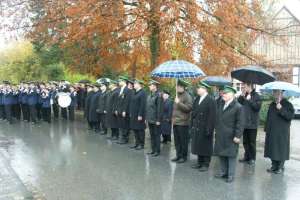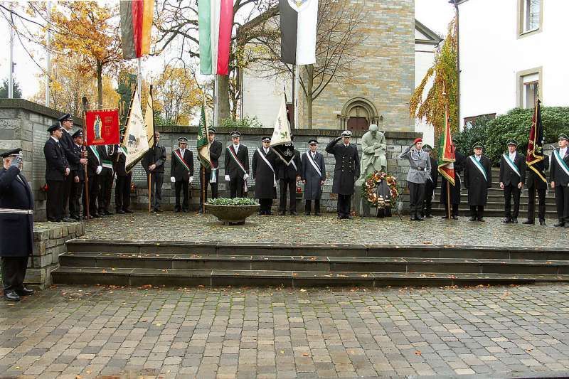 Kameradschaftsvorsitzender Reinhard Priesnitz begrüßte dazu die Fahnenabordnungen der Vereine, die Bundeswehrsoldaten Marc Joachimsmeier und Andreas Lehnen, das Tambourkorps und die Löschgruppe Mellrich, die Ortsvorsteher Georg Dicke, Altenmellrich, Herbert Ferdinand, Uelde und Franz Grae-Budde, Mellrich. Die Fahnenabordnungen hatten im Chorraum der Pfarrkirche Aufstellung genommen. Waltringhausens Ortsvorsteher Heinrich Berglar hielt die Ansprache. Am Ehrenmal wurde bei leichtem Regen der Kranz beim "Lied vom guten Kameraden" niedergelegt und die Nationalhymne gespielt. Hauptmann Reinhard Riekötter hatte das Schießkommando übernommen. Am Vereinslokal Pöppelbaum bat Vorsitzender Priesnitz um eine rege Teilnahme an der Kirchenvorstandswahl, die an diesem Wochenende stattfand und lud danach zum Umtrunk ein. Die Löschgruppe hatte wieder in bewährter Weise Ordnungsdienste übernommen.