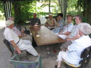 Bei schwül-heißem Wetter eroberte die Wandergruppe die Bohnenburg, ein idyllisch im Wald gelegenes Ausflugslokal zwischen Belecke und Suttrop. Wegen der Ferienzeit und wohl auch wegen der für ältere Leute belastenden Witterung, vielleicht aber auch unter dem Eindruck des verlorenen Fußball-WM-Halbfinales, hatte sich nur ein kleines Häuflein von 10 Aufrechten gefunden, um sich auf den Weg von Belecke zur Bohnenburg und zurück zu machen. Nach dem schweißtreibenden Weg konnte sich die Gruppe im Freien mit Kuchen und Getränken stärken, bis dumpfes Donnergrollen zum Aufbruch mahnte. Alle schafften es noch bis zu den Autos, bevor ein gewaltiger Gewitterschauer niederging.