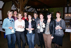 Als die "junge Truppe" mit Christiane Müller und Marion Dicke aus Altenmellrich, Birgit Schwietzer und Corina Hess aus Mellrich, Vera Hahne aus Robringhausen, Karin Gerken, Ursula Graskemper und Dagmar Koors aus Uelde im vergangenen Jahr die kfd des Kirchspiels Mellrich vor dem drohenden Aus rettete, zeichnet sich nun nach einem Jahr ihrer Arbeit ein Aufwärtstrend ab. Mutig ging das Team an die Arbeit und als Christiane Müller im vergangenen Jahr sagte: "Schauen wir mal, wie das Jahr so wird!", konnte das kfd-Team während der diesjährigen Jahreshauptversammlung im Gasthof Pöppelbaum auf ein erfolgreiches Jahr zurückblicken. Christiane Müller und Corina Heß eröffneten die Versammlung, an der 52 Frauen teilnahmen. Während des Totengedenkens gedachte man fünf verstorbener Mitglieder. Reinhild Schramm stimmte mit einer besinnlichen Geschichte auf den Advent ein. Es folgten der Jahresrückblick und Kassenbericht von der Kirchspiel-Caritas durch Elisabeth Schröder und Margret Bußmann. "Die Caritas kann ihre Aufgaben vor Ort nur dann erfüllen, wenn die Spendenbereitschaft nicht nachlässt!", so Margret Bußmann. Den Kassenbericht der kfd des Kirchspiels Mellrich präsentierte Vera Hahne. Ursula Graskemper ließ recht informativ die Aktivitäten der kfd Revue passieren, wobei sie betonte, dass der neue offene Frauentreff gut angenommen wurde. Karin Gerken stellte das Programm für das neue Jahr vor, woran sich die Wahlen des Vorstandsteams und der geistlichen Begleiterin anschlossen. Die Versammlung sprach dem gesamten Team ihr Vertrauen aus, dem Christiane Müller, Marion Dicke, Birgit Schwietzer, Corina Hess, Vera Hahne, Karin Gerken, Ursula Graskemper und Dagmar Koors angehören . Geistliche Begleiterin der kfd des Kirchspiels Mellrich wurde Reinhild Schramm. Heilpraktikerin Birgit Schwietzer hielt einen Vortrag über das "Sonnenvitamin D". Sie erklärte u.a. , dass das Vitamin D durch direkte Sonneneinstrahlung gebildet wird und in der Nahrung kaum vorkomme. Anschließend begleitete Birgit Schwietzer ein gemeinsam gesungenes Adventslied auf der Gitarre, und danach gab's für alle Frauen als kleines Dankeschön vom Vorstand aus den ausgedienten Gotteslob-Büchern selbstgestaltete Engel.