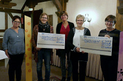 Karina Böthel von der HOSPIZ-Initiative Erwitte - Anröchte und Hildegard Fisch vom Verein HORIZONTAS über die richtungsweisenden Aktivitäten bei der Trauerbegleitung am Ende des Lebens und der Hilfe für Kinder und Jugendliche bei der Trauerbewältigung. Christiane Müller, Karin Gerken und Ursula Graskemper würdigten die Arbeit der beiden Initiativen. Sichtlich erfreut nahmen Karina Böthel und Hildegard Fisch Spendenschecks in Höhe von 500 Euro entgegen. Diese Spenden wurden ermöglicht durch den Gartentag, der in diesem Jahr im September in Mellrich stattfand.