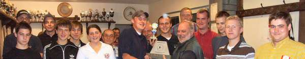 Foto: SSV - Vorsitzender Günter Joachimsmeier überreichte die Pokale an die siegreichen Teams sowie den Wanderpokal (Foto) an den Schützenverein Mellrich-Waltringhausen.